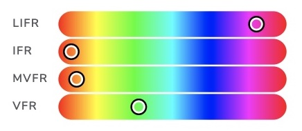 We use four colours to denote varying weather conditions. These are based on a combination of the US NOAA/FAA recognised colours, and the ICAO/EASA/CAA weather minima.